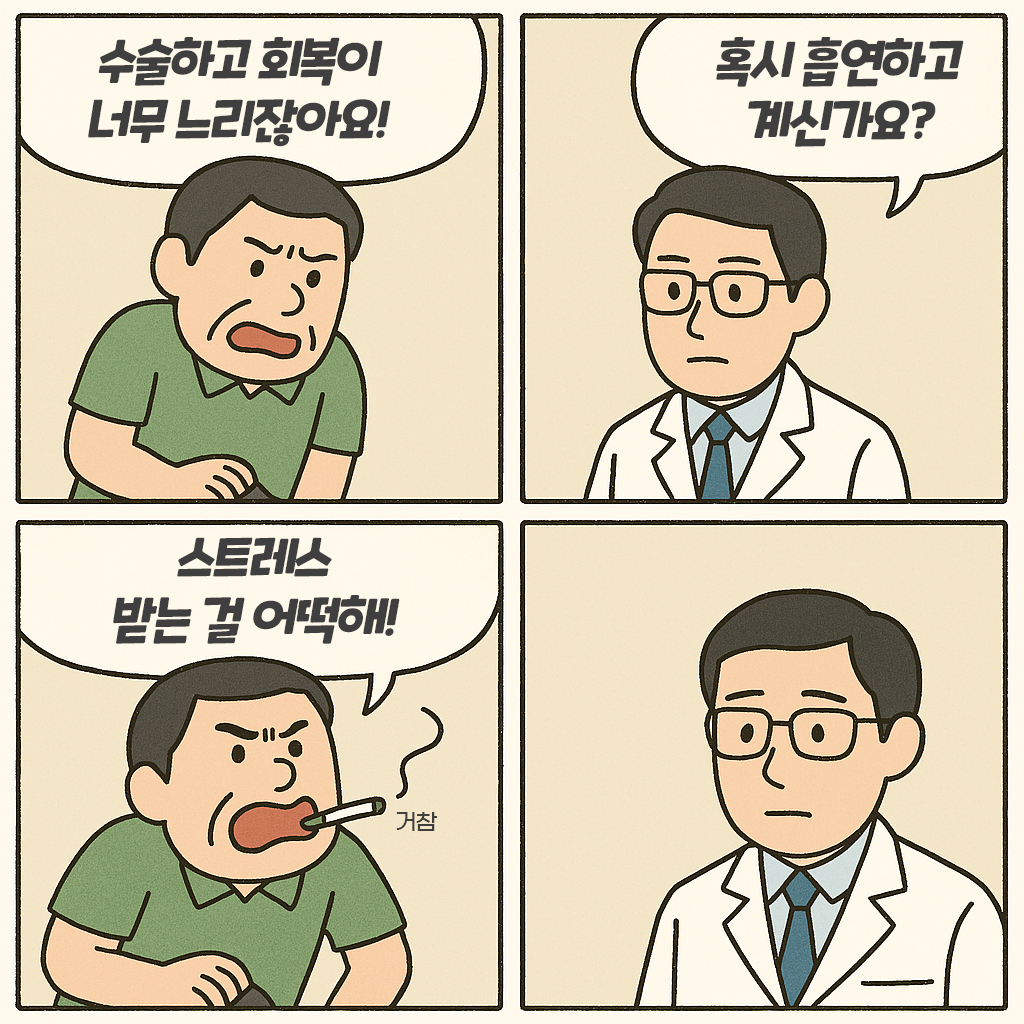 아이고.. 오늘은 무릎 수술을 하시고 흡연하신 분을 모셔봤는데요!