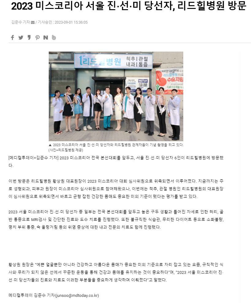 2023 미스코리아 서울 진‧선‧미 당선자, 리드힐병원 방문
