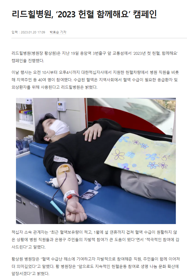 리드힐병원, ‘2023 헌혈 함께해요’ 캠페인 _ 경향신문